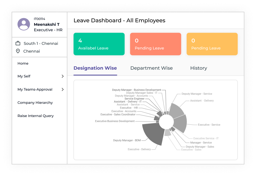 Automate leave management process by setting right rules as per the different organisation's policies. GoForHR streamlines all the critical areas of Leave Allocation, Tracking, Approval, Rejection or Cancellation of leave requests with interactive employee self-leave tracking Features. GoForHR's powerful dashboard allows user and management to have the neccessary insight that is required for business operations and also fulfill compliance expectation.